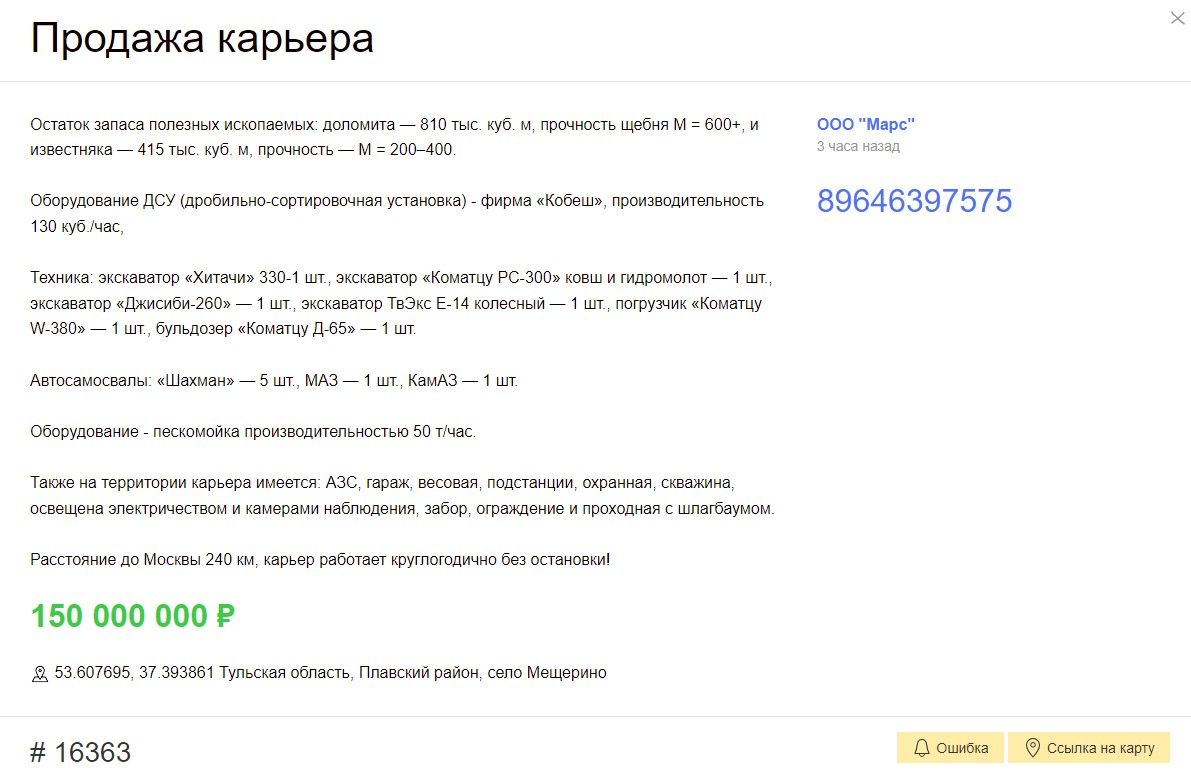 При нажатии на метку, открывается карточка с телефоном, ценами, описанием. Все можно менять