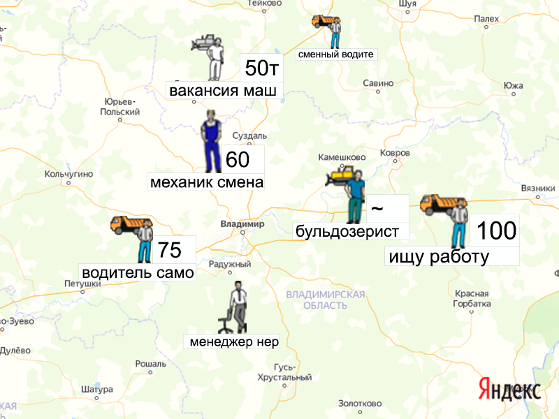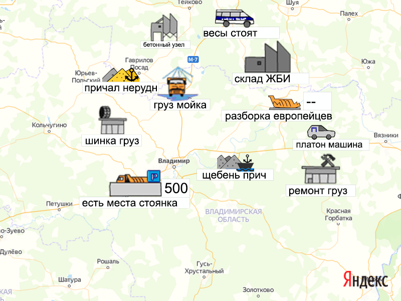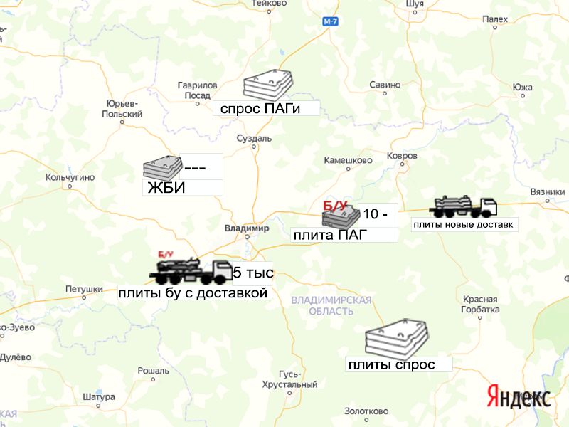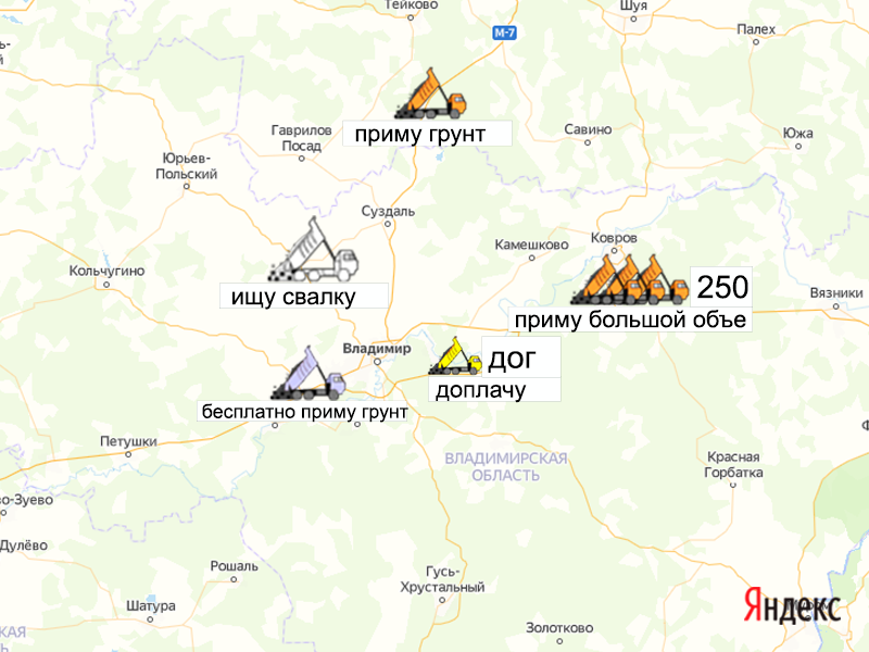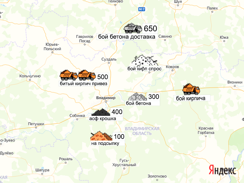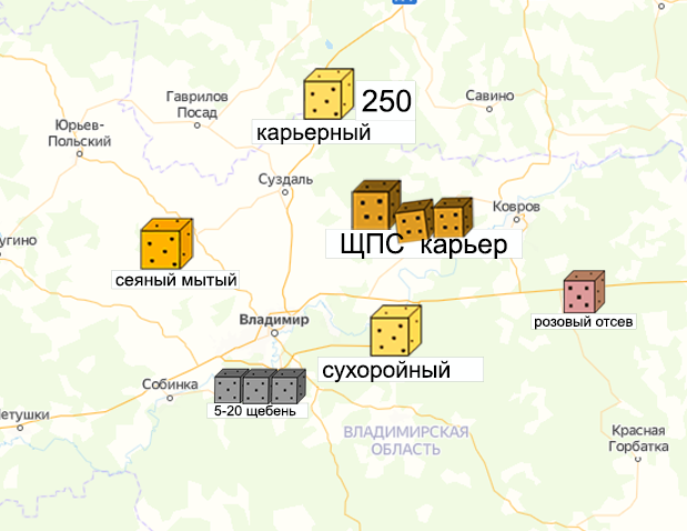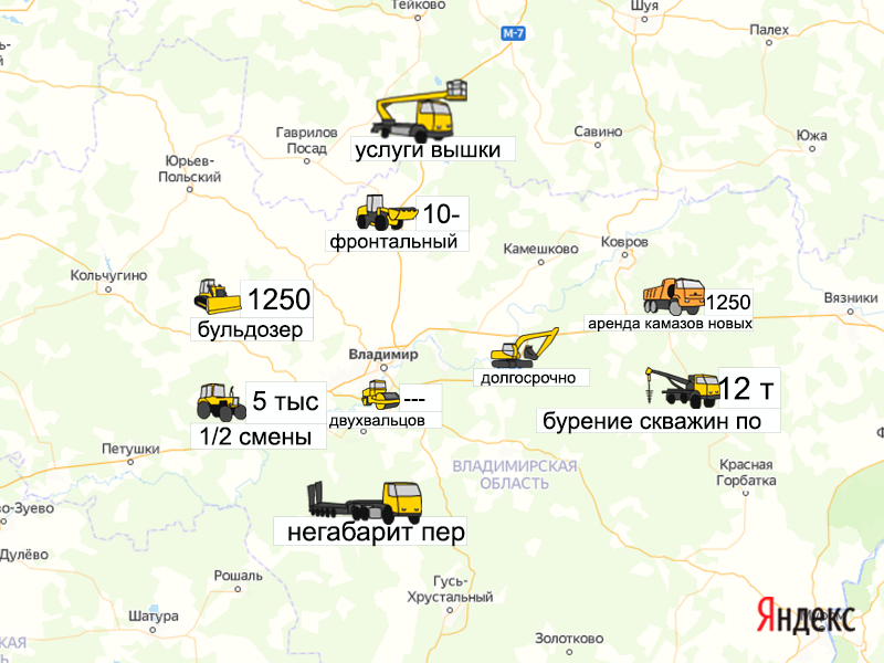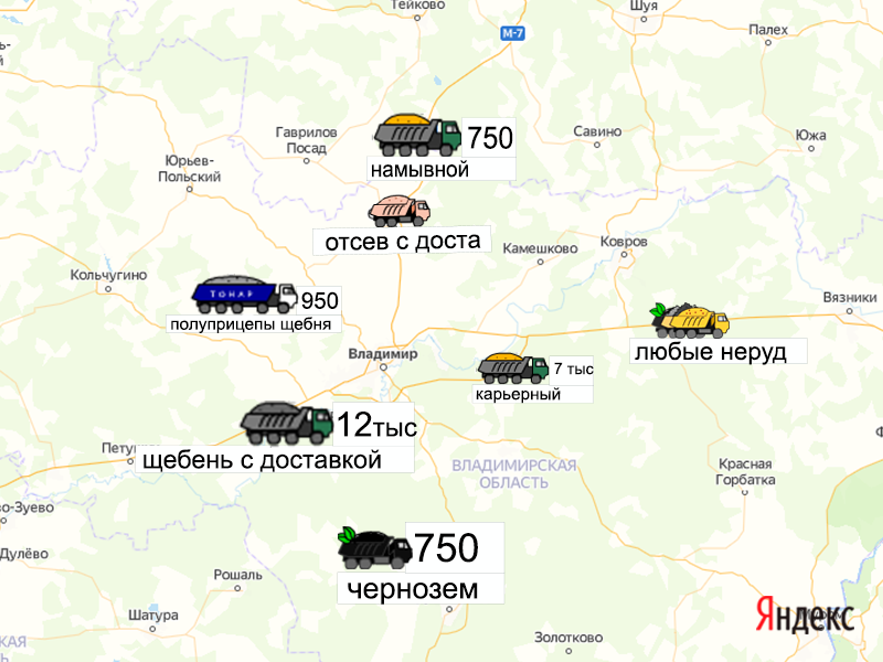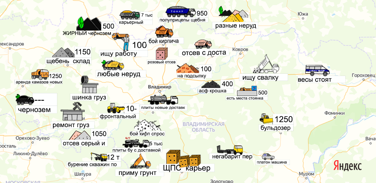 Песок, щебень, техника: объявления на карте во Владимирской области