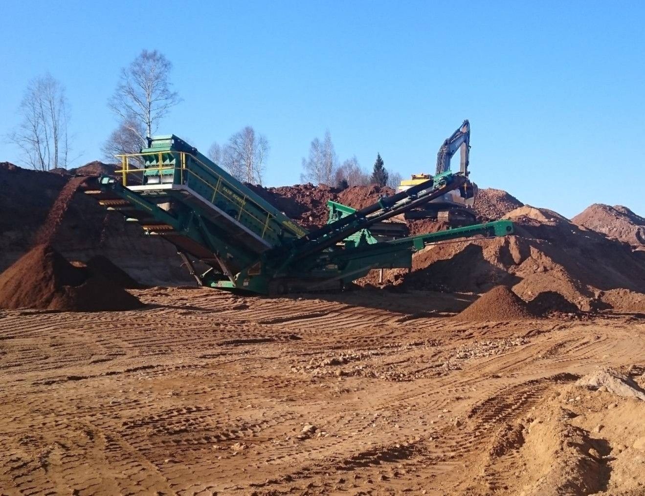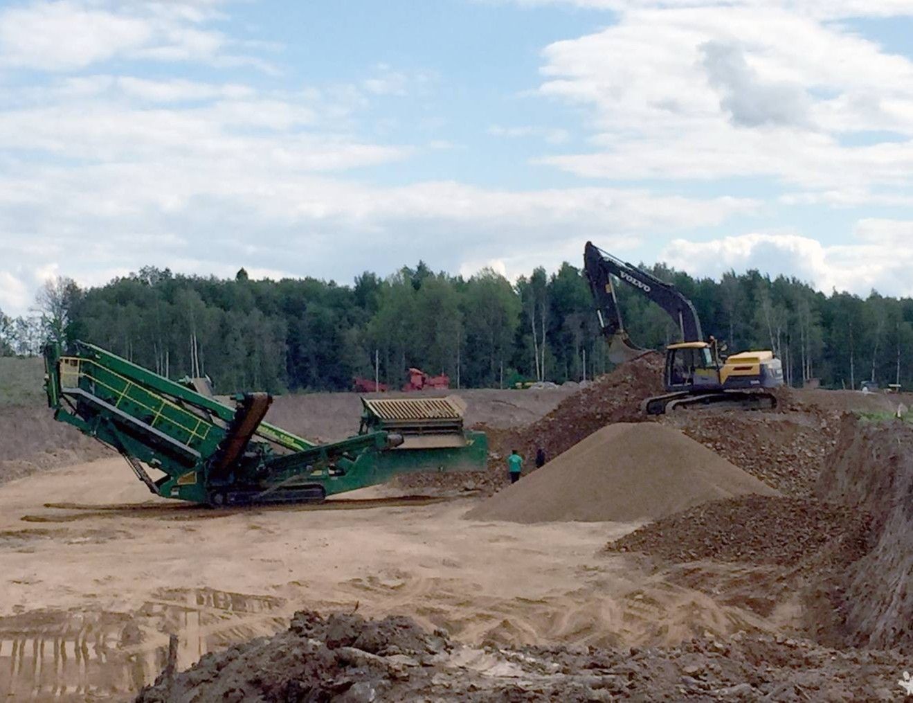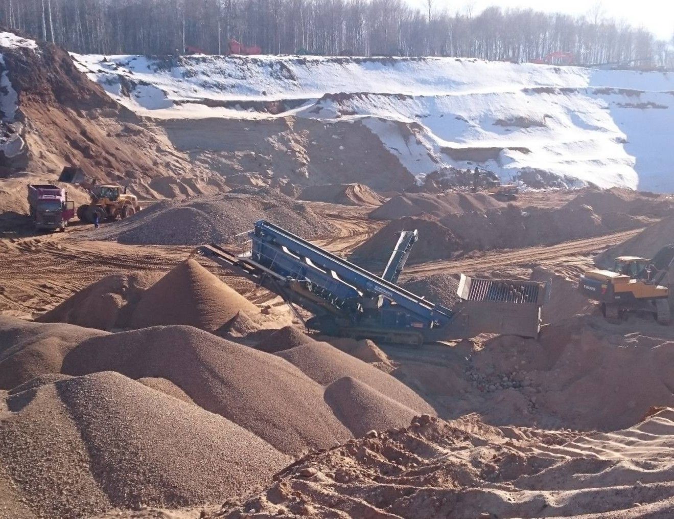 В самом карьере и на площадке рядом ПГС перерабатывается в гравий и щебень различных фракций, песок, отсев, валуны для ландшафтного дизайна и строительства. В летнее время дополнительно моют продукцию.