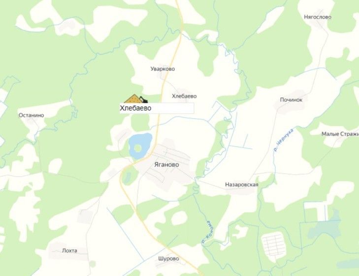 Вологодская область, Череповецкий район, в 0,45 км западнее д. Хлебаево, в 24,0 км северо-северо-восточнее ж.д.ст. Череповец 1