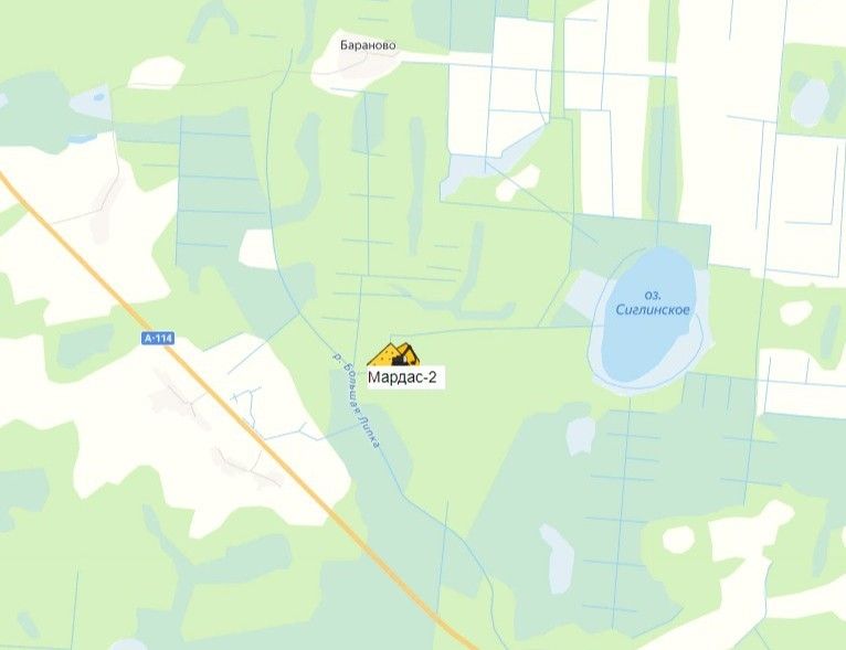Вологодская область, Чагодощенский район, в 13 км южнее пос. Чагода, в 2,5 км восточнее д.Мардас, на территории Белокрестского поселения