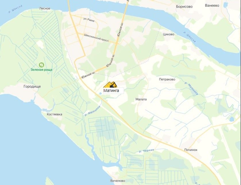 Вологодская область, Череповецкий район, в 0,8 км юго-западнее с. Ильинское, 9,3 км юго-юго-восточнее ж.д. вокзала г. Череповца