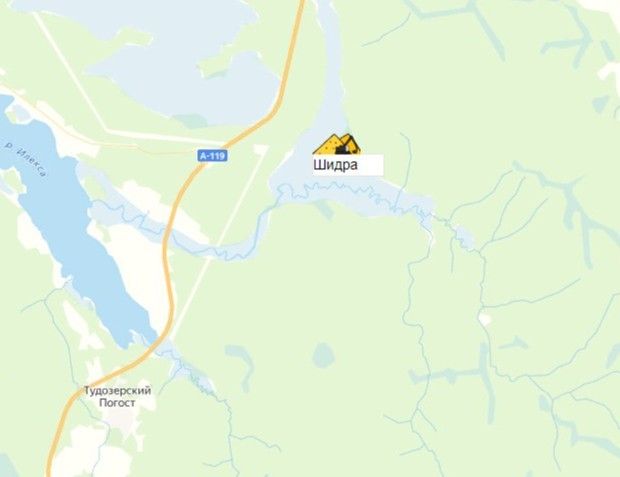 Вологодская область, Вытегорский район, в 19 км северо-восточнее г. Вытегры, в 1,6 км восточнее автодороги «Вологда-Медвежьегорск»