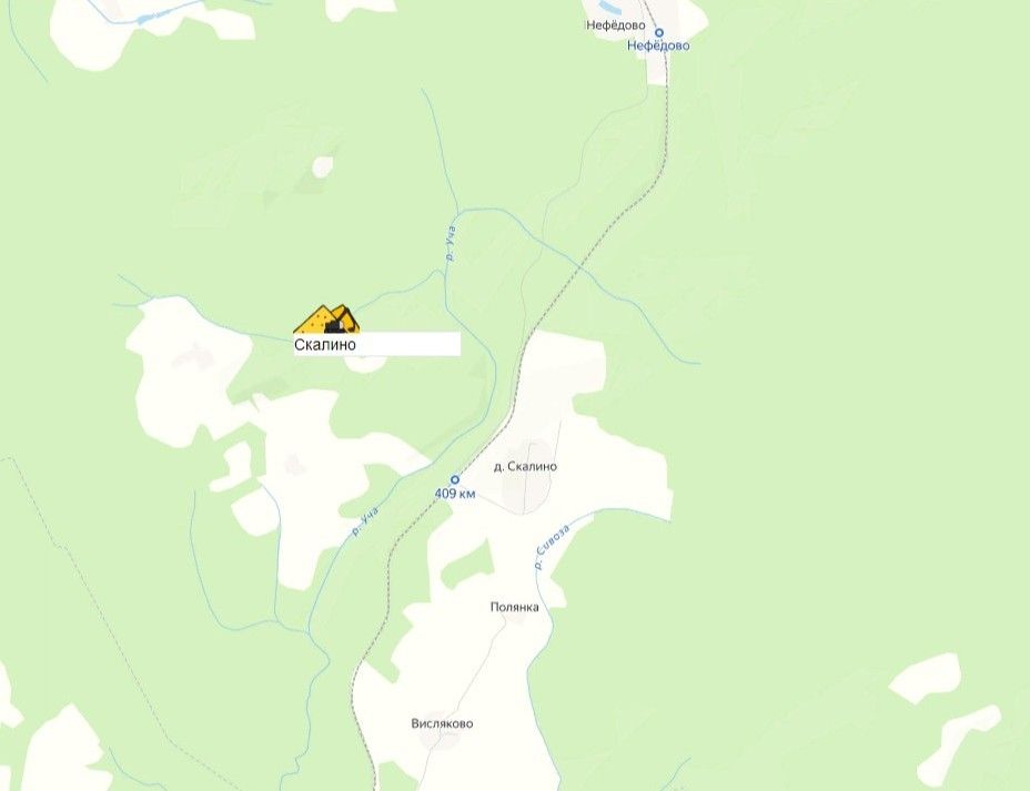 Вологодская область, Грязовецкий район, в 32 км южнее г. Грязовца, в 1,5 км восточнее д. Турыгино, в 4,8 км севернее ж.д. станции Скалино
