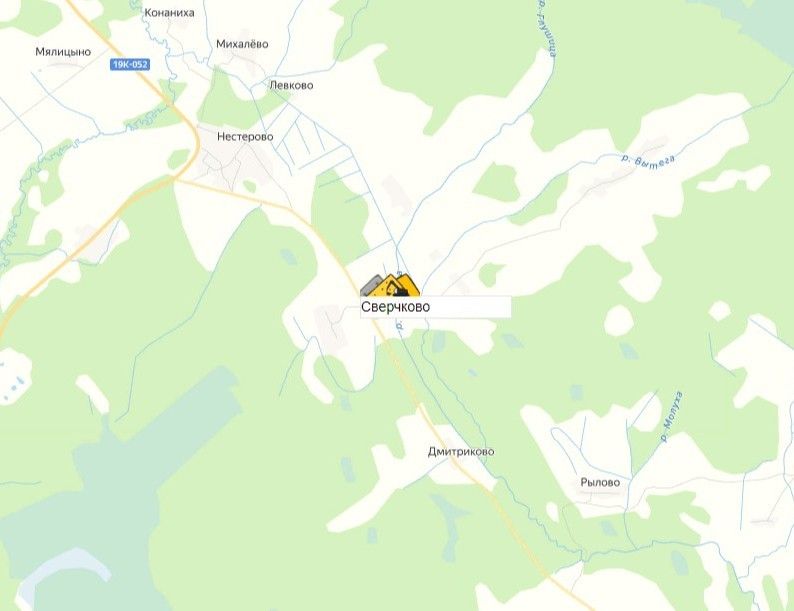 Вологодская область, Сокольский район, в 2 км юго-восточнее д. Нестерово, в 23 км северо-северо-западнее ж.-д. ст. Сухона (г. Сокол), в непосредственной близости от д. Сверчково, на территории Архангельского сельского поселения