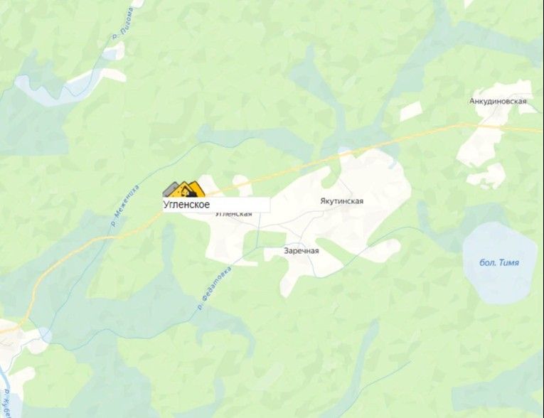 Вологодская область, Вожегодский район, в 33 км восточнее ст. Вожега, в 4 км северо-восточнее п. Ючка, в 0,1 км западнее д. Угленская на территории Нижнеслободского сельского поселения