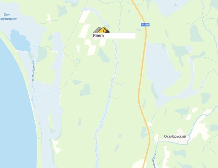 Вологодская область, Вытегорский район, в 48 км северо-северо-восточнее г. Вытегра, в 8 км северо-западнее пос. Октябрьский, на правом берегу р. Ялега