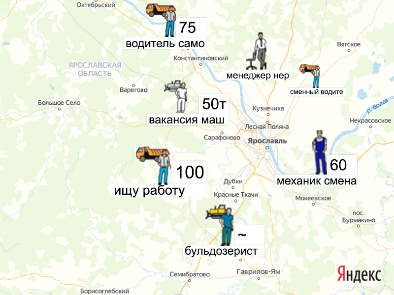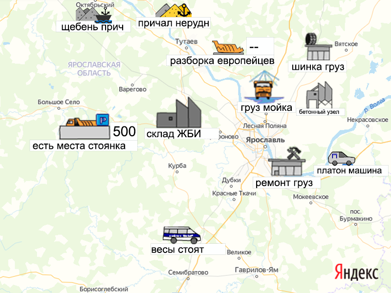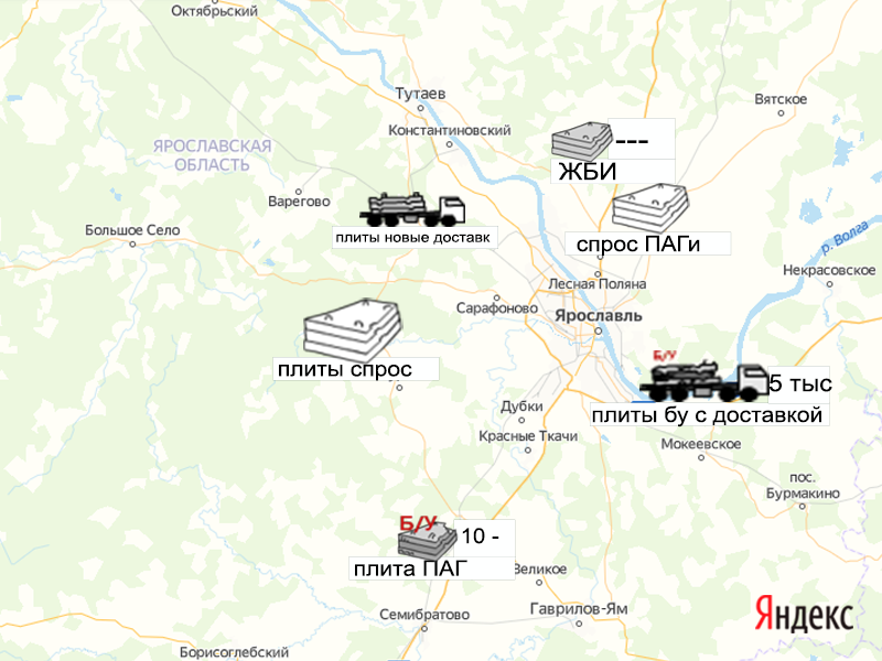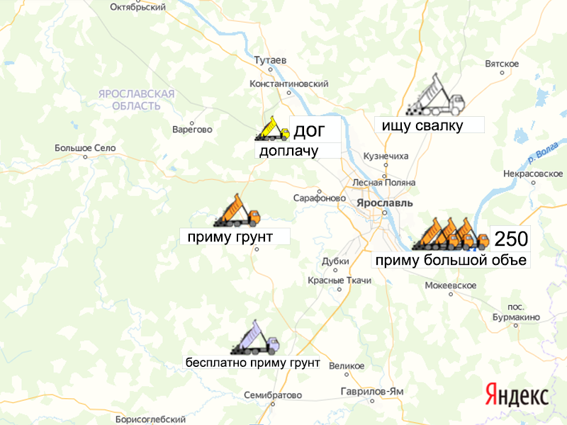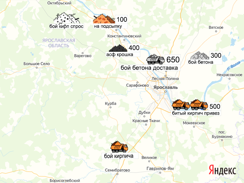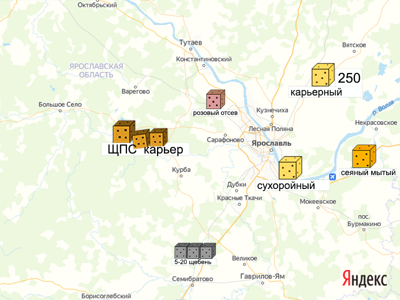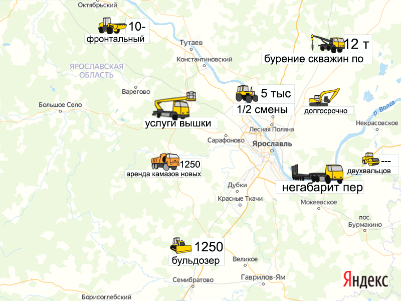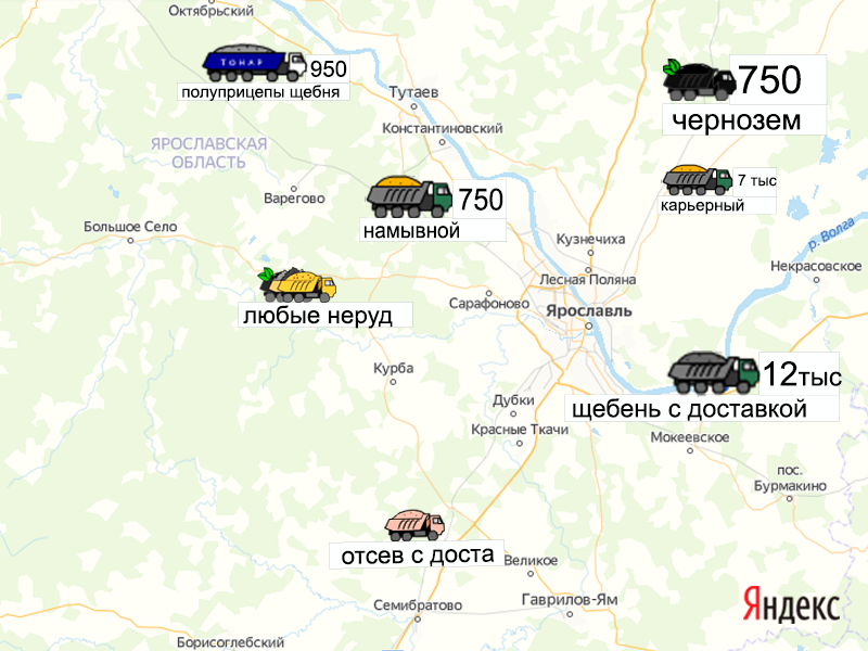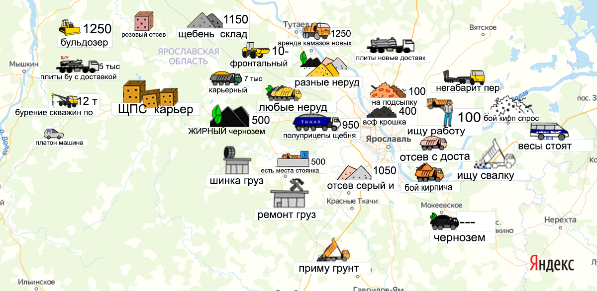 Песок, щебень, техника: объявления на карте в Ярославской области