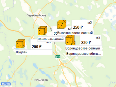 На карте цены строго от карьеров и перевалок нерудных материалов. Стоимость за 1 куб.