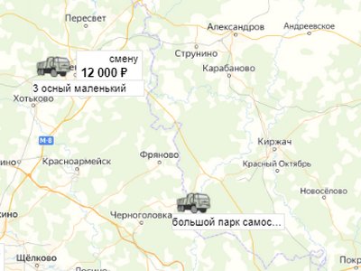 Срочно надо нанять самосвалы? На карте большой выбор самосвалов разной грузоподъемности. Все цены и прямые телефоны владельцев указаны.